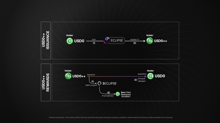 To make their USD0 productive, users can stake USD0 or purchase USD0++ on the secondary market. USD0 Liquid Staking Token (USD0++) is issued when a user locks their USD0 for 4 years. In return, they receive a composable and transferable USD0++ which provides rewards in USUAL tokens.